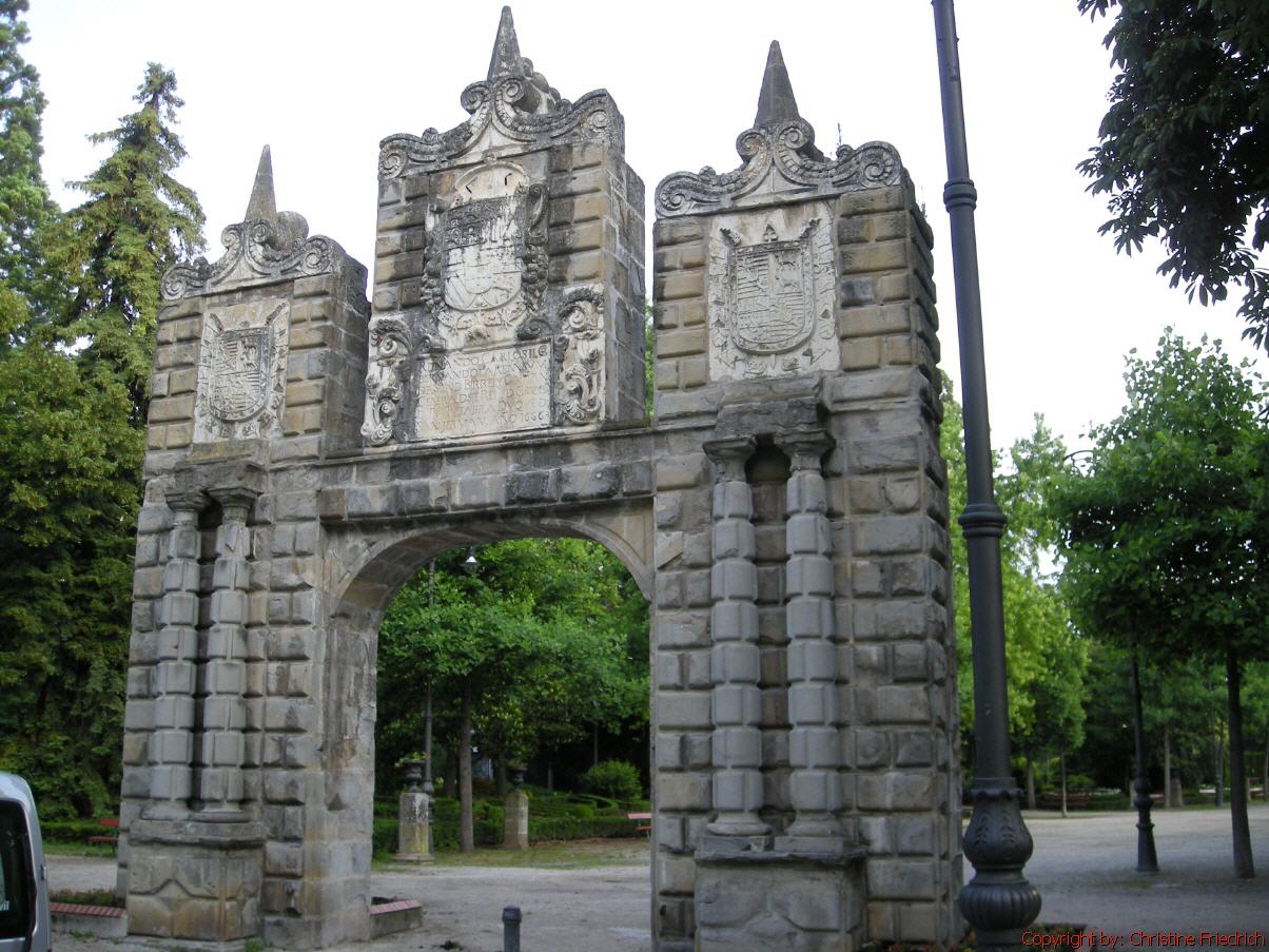 Eine Stunde später. Der frühe Morgen ist angenehm kühl, jedoch nicht kalt. Es ist noch etwas bewölkt, schaut aber nicht wirklich nach Schlechtwetter aus. Ich möchte noch eine Nacht in Pamplona bleiben, muss aber aus der Herberge. So nehme ich den gleichen Weg, den ich gestern gekommen bin, zurück in die Altstadt. Der Beton ist mittlerweile trocken.