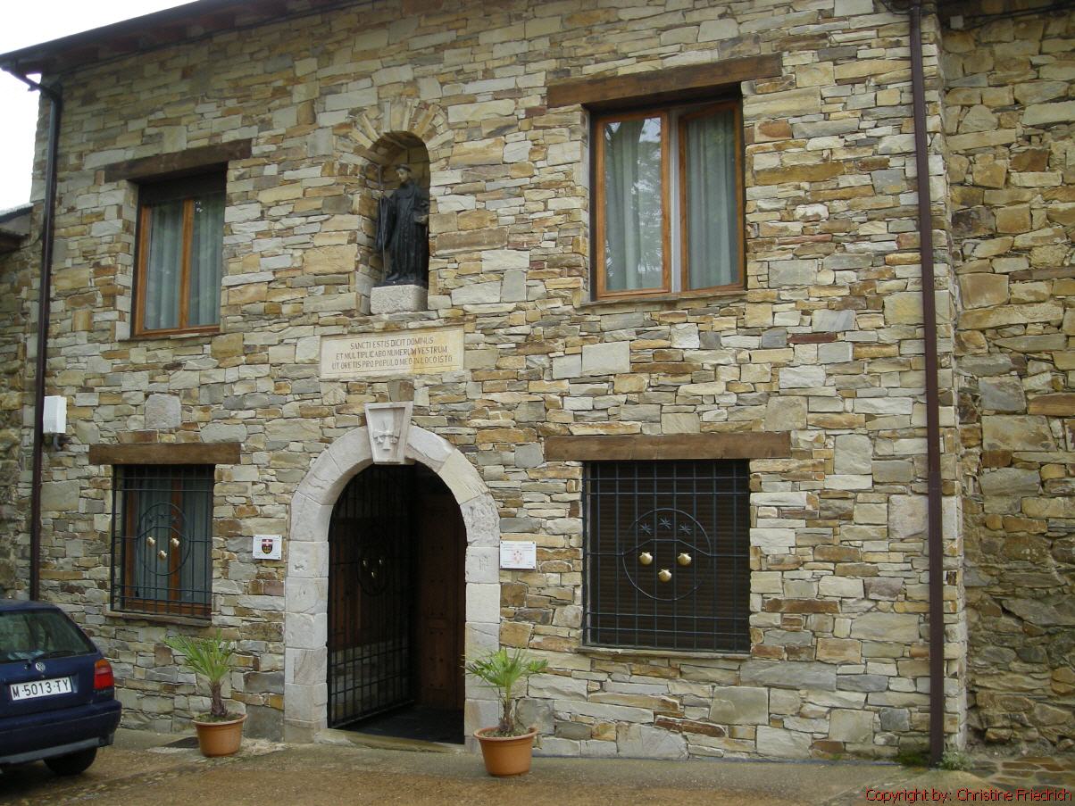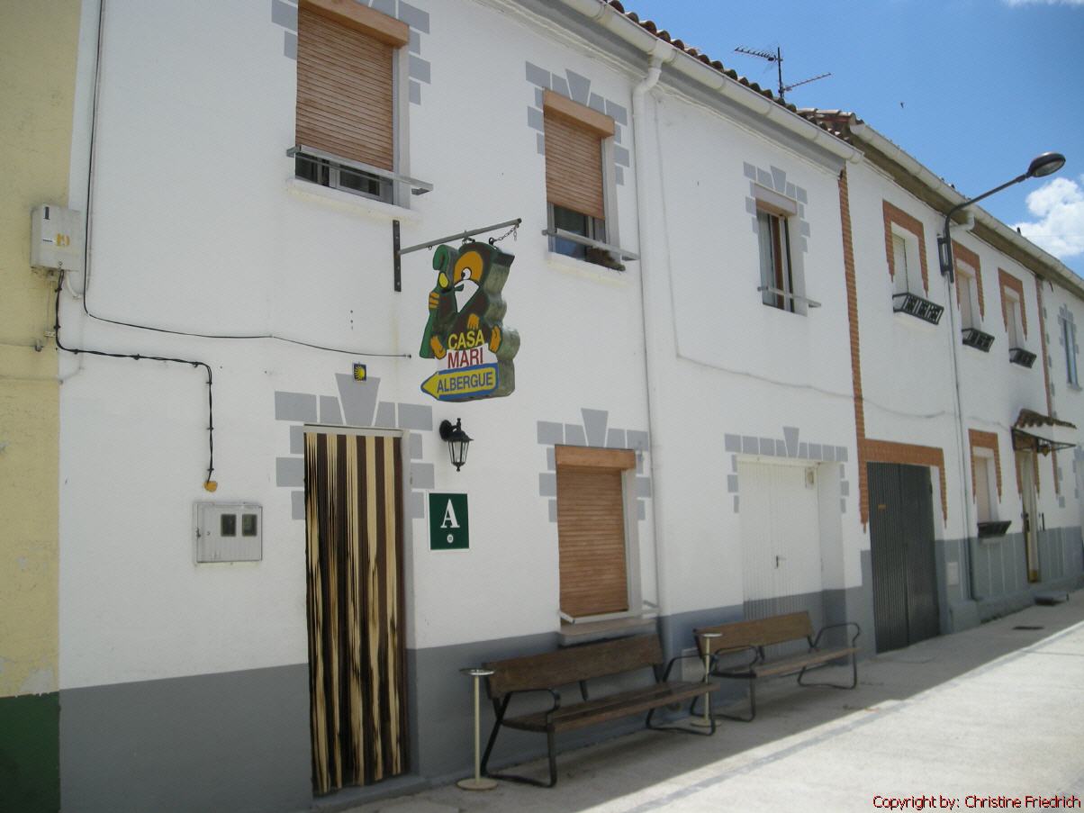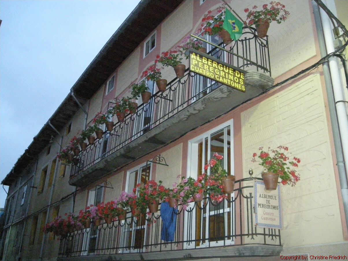An Ende des Ortes ist eine nette, saubere Herberge, in der wir auch etwas zu essen bekommen. Wir bestellen unser erstes Pilgermenü, das uns ausgezeichnet schmeckt. Die 10 Euro für die Herberge lohnen sich wirklich. Gutes Bett, sauberes, großes Zimmer, saubere Dusche!