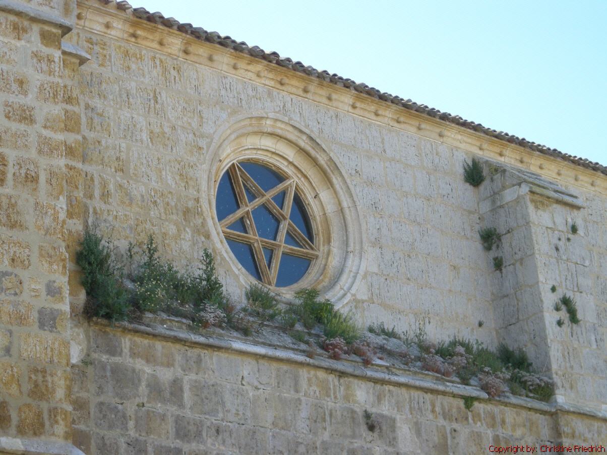 Hier können wir wenigstens sitzen und den Rucksack runter nehmen. Der Regen prasselt nur so herunter, ein richtiger Wolkenbruch. Die Kirche ist eine Ordenskirche mit Klausur für Frauen: Commondadoras St. Spiritus.