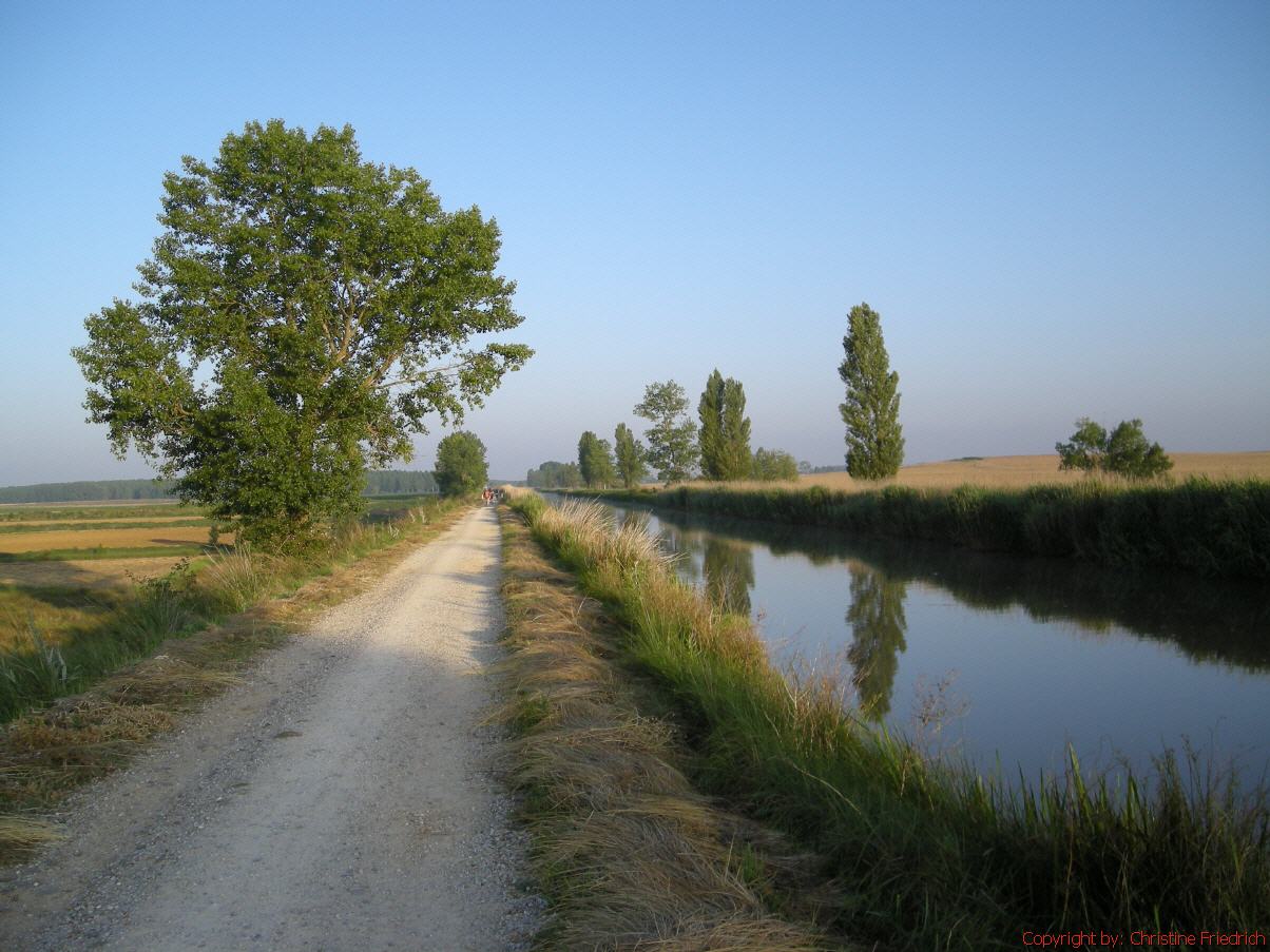 Um 7 Uhr gehe ich aus der Herberge. Es ist noch etwas kühl, aber nicht unangenehm. Einige Deutsche haben ein Auto für ihr Gepäck geordert. Die Rucksäcke sind ihnen zu schwer, so haben sie heute Marscherleichterung und können besser auf den Putz hauen.