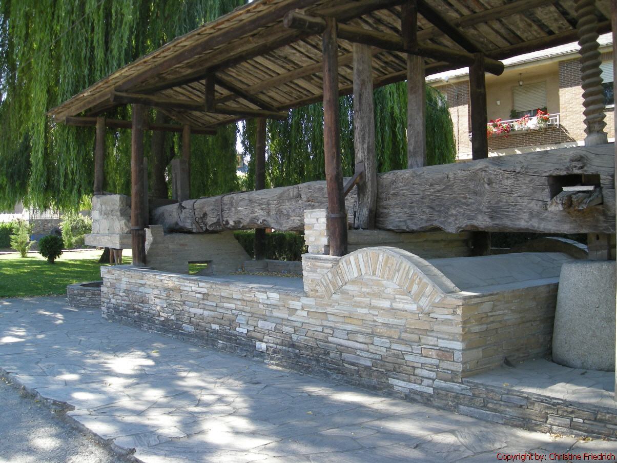 Man könnte wirklich viel ansehen, allerdings nicht in der Mittagszeit. Bei einem schönen Brunnen, vor dem Justizpalast, machen wir Mittagsrast bis ½ 3 h. Der Weg führt uns weiter über Feld und Flur. Einen kleinen Umweg machen wir, um der Weinkellerei „Bodegas Irache“ mit „Weinbrunnen“ (rotem und weißen Wein) sowie einem Wasserbrunnen, einen Besuch abzustatten. 100m weiter ist das gleichnamige Kloster „Irache“. Etwas gestärkt quälen wir uns auf schönen Feldwegen und weniger schönen Straßenwegen bis zum Abend (18 Uhr) bis nach Villamajor de Monjardin. Die Herberge ist sehr einfach – man kann auch spartanisch dazu sagen. Ein altes Haus mit kleinen Räumen, noch kleineren sanitären Anlagen. Die Herberge wird von einer holländischen spirituellen Gruppe geführt. Es gibt ein gemeinsamen Abendessen. Vorher wird noch das Johannesevangelium im Kleinformat ausgeteilt und vor dem Essen gemeinsam gebetet. Es gibt auch nach dem Abendessen Gelegenheit, sich mit anderen über die Bibel auszutauschen.