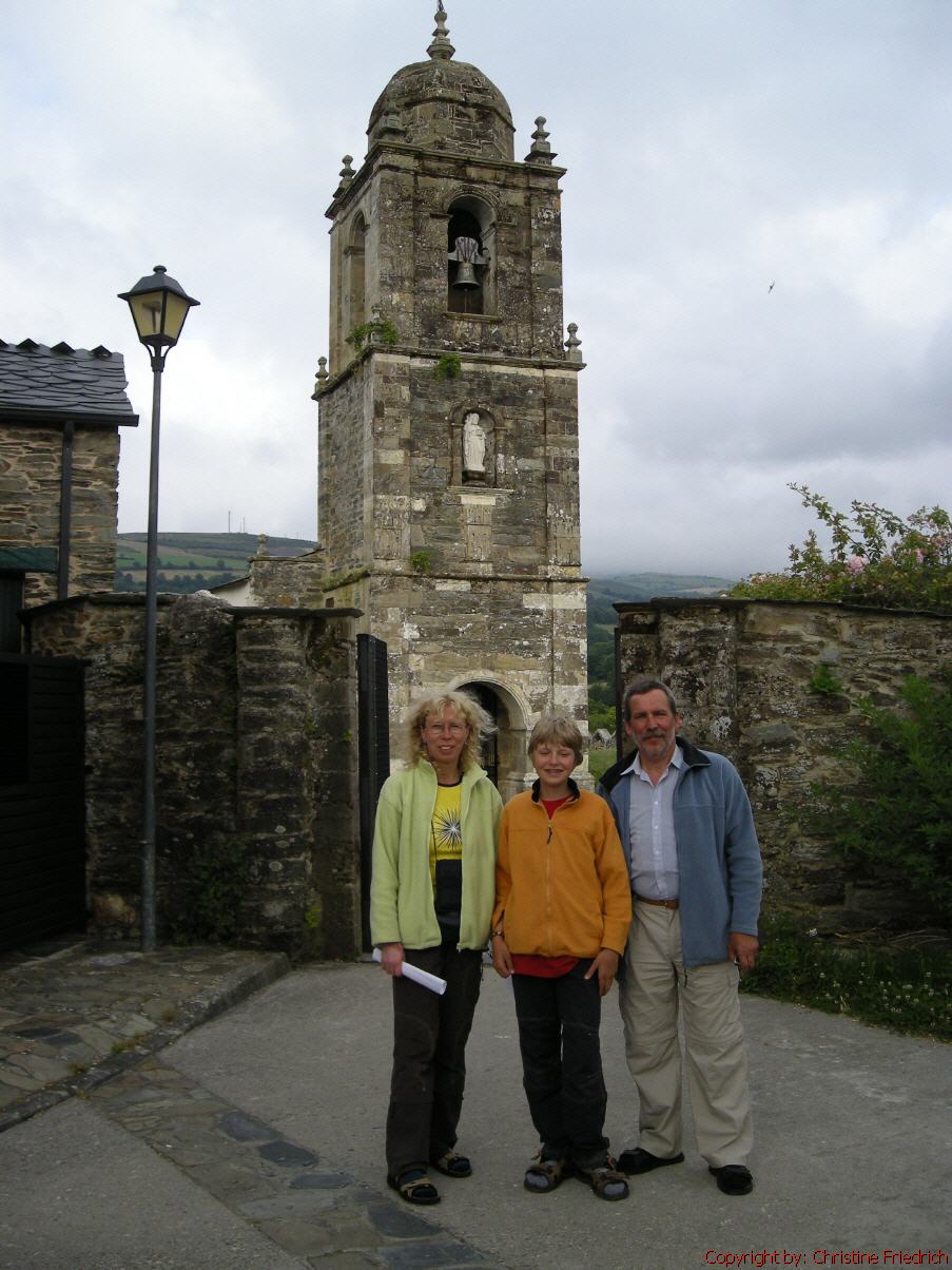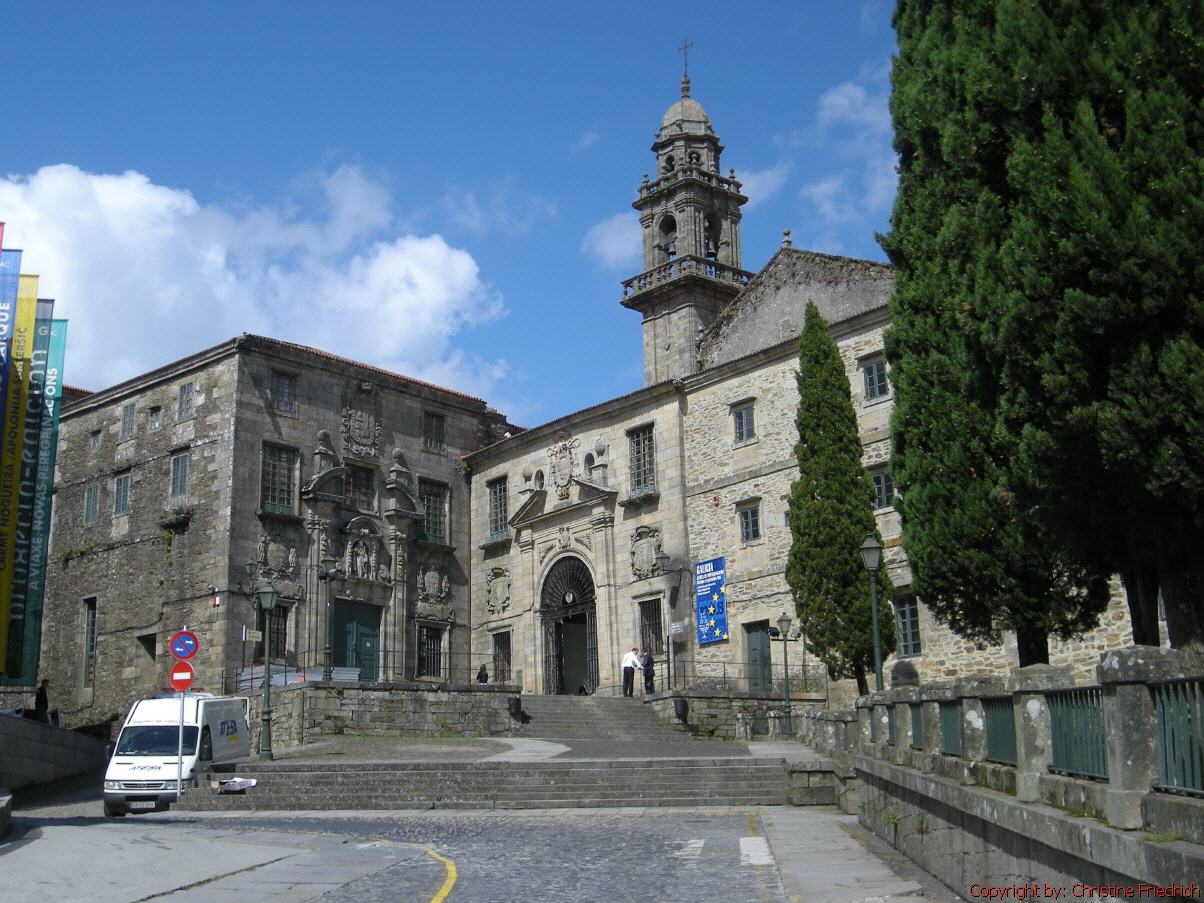 6 Uhr aufgestanden, ½ 7 weg von Portomarin. Wolkig, nebelig, anfangs nieselt es. Um 8:40 in Gonzar. Der Weg geht ziemlich steil bergauf, dann auch wieder steil bergab. Pause bis um 9:05. Um 10 Uhr in Hospital da Cruz, 11:30 in Airexe. Und um 13:30 in Palas de Rei. Herberge Municipal, 5€. Suppe gegessen, mit Ingi telefoniert. Anschließend diverse e-Mails geschickt. Abendessen kalt. Kirche angesehen, Stempel geholt.