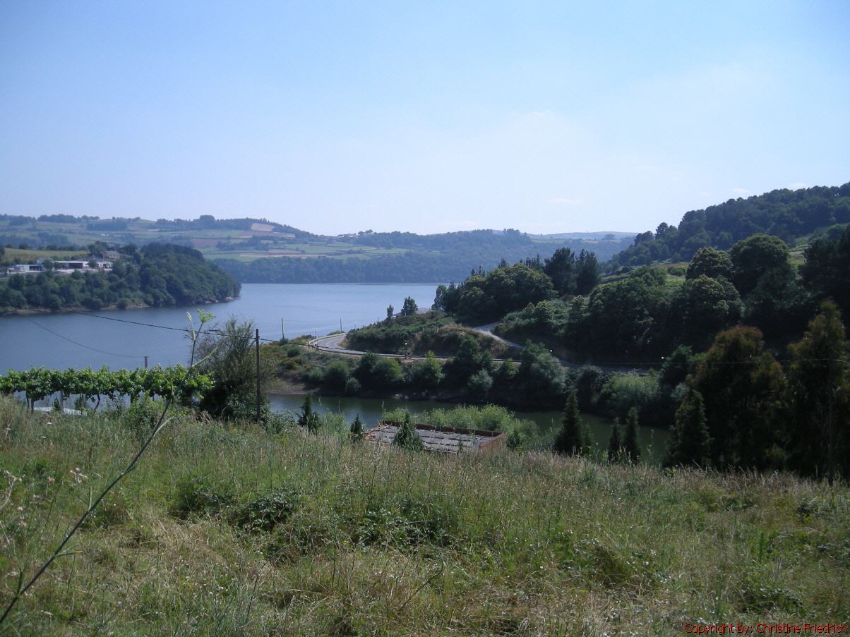 6 Uhr aufgestanden, ½ 7 aufgebrochen von Sarria. Um ½ 8 war ich in Barbadello. 15 Minuten Rast. 9:50 in Ferreiros (bei km 98,5), um 12:30 in der Herberge in Portomarin. Der Weg war ein Auf und Ab, das Wetter anfangs sehr bewölkt, sah nach Regen aus. Später ist es sonnig und heiß geworden. Die Herberge hat einen wunderschönen Ausblick auf den Fluss, der fast wie ein See aussieht (Salzkammergut). Wäsche gewaschen, e-Mails geschrieben an Kinder wegen Termin. War dann im Ort, Kathedrale besichtigt, Bekannte getroffen, fürs Abendessen eingekauft, Karten geschrieben, Ingolf genervt. Schlafen 21 Uhr.