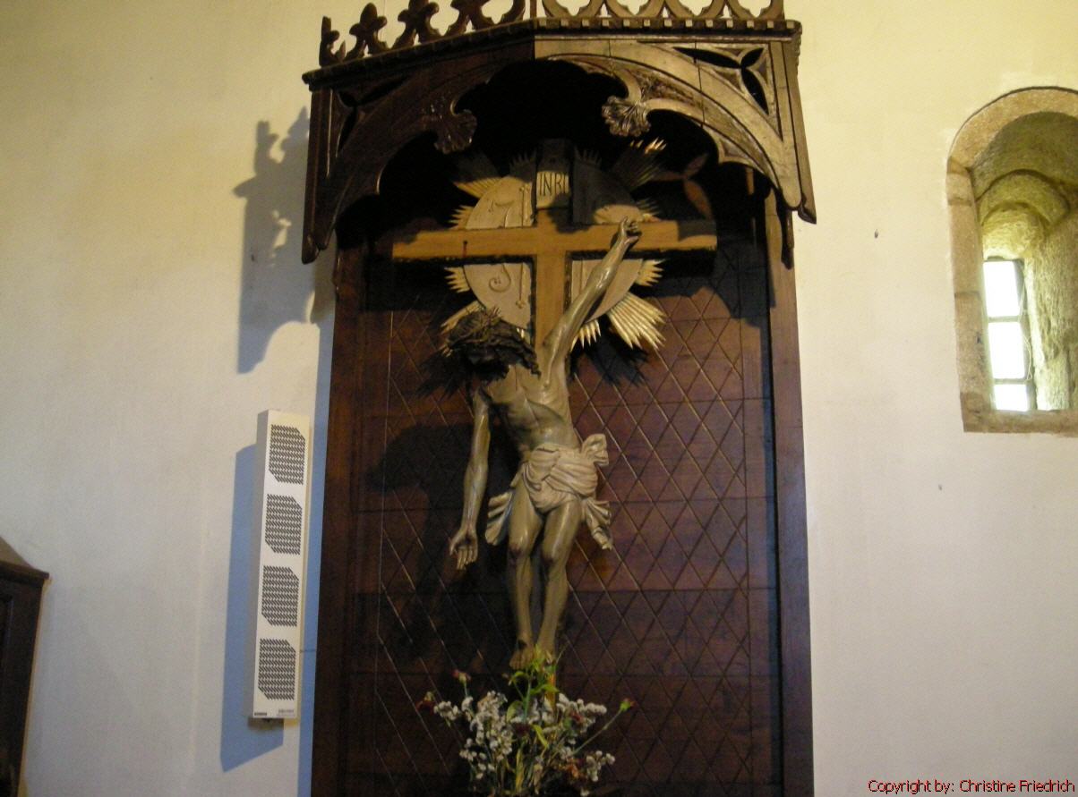 Um 9 Uhr weiter gegangen. Um 10 Uhr war ich in Furelos. Die Kirche war offen, also ging ich hinein. Ein alter Pfarrer, aber lieb. Hat mir die Kirche auf Spanisch erklärt. Habe wenig verstanden, aber es gibt dort ein besonderes Kreuz, siehe Foto (Christus hat den rechten Arm zur Erde weisend).