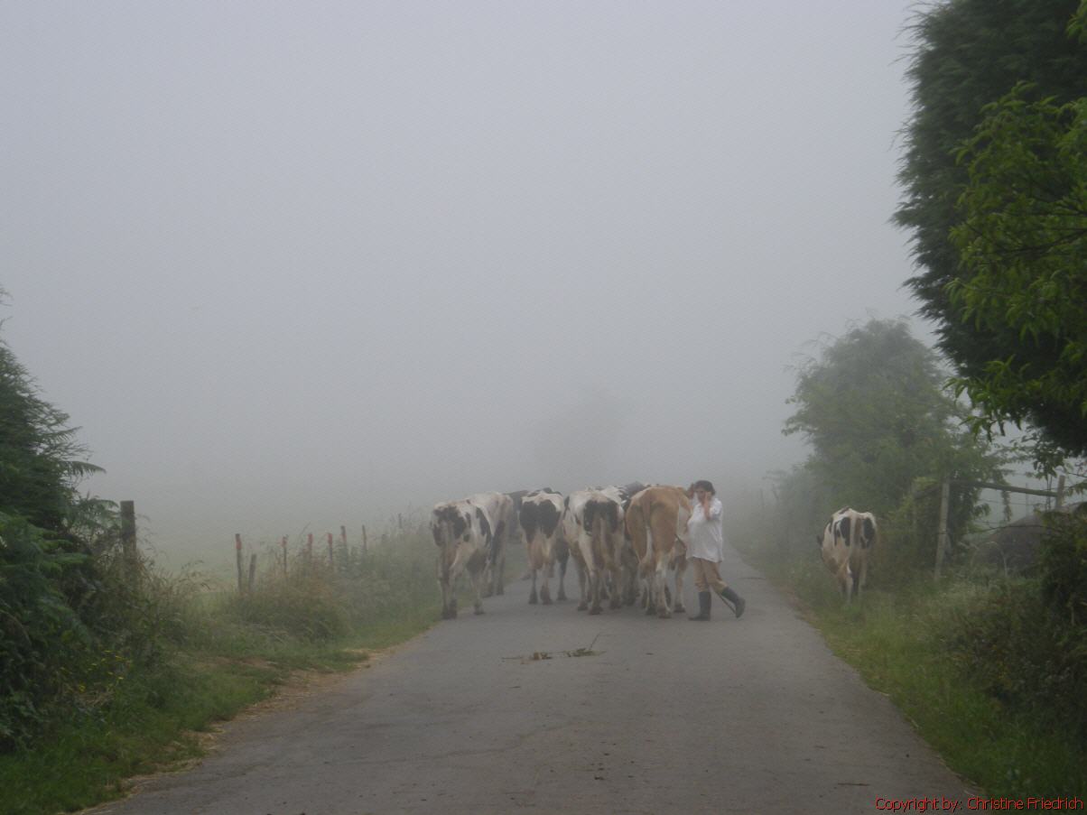 6 Uhr auf, ½ 7 Uhr ab. Es war noch dunkel, wird jedoch rasch hell. In Casanova war ich um 8 Uhr. Es gab aber nichts zum Frühstücken. Schön zu gehen. Weiter bis O Coto – ½ 9. Bei den „Die 2 Deutschen“ Frühstück gekauft. Tee, frischer Orangensaft und ein riesiges Stück Zitronenkuchen, der aber trocken war – 4€, stolzer Preis!