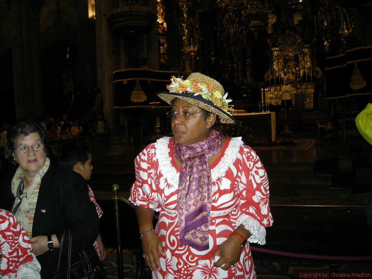 Nach 8 Uhr aufgestanden. Mit dem Bus in die Stadt gefahren. Wetter: noch stark bewölkt, doch kein Regen. Diverses fotografiert, und rechtzeitig für den Gottesdienst in die Kathedrale gegangen. Guter Platz, Richtung Altar, 1. Reihe rechts. Vor dem Gottesdienst wurden die Namen der neu angekommenen Pilger (vom Vortag) genannt; mein Name war auch dabei – die einzige Genannte aus Österreich. Der Gottesdienst war sehr schön, nur das Weihrauchfass wurde nicht geschwungen. Nachher einige Bekannte getroffen, auch Justine aus Deutschland. Ist mit mir nach San Lazaro; sie hatte noch keine Unterkunft. nachmittags wieder in die Stadt, fotografiert, Karten geschrieben. Sehr sonnig und heiß.