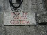Die Müllabfuhr ist unterwegs, die Strassen werden mit Wasser abgespritzt. Offensichtlich fand gestern ein größeres Fest statt. Ich fotografiere ein wenig und bin auf der Suche nach einem Frühstück. Es ist jedoch noch alles geschlossen, menschenleer und still. Wenn schon kein Frühstück, dann vielleicht ein schönes Fotomotiv? Ich finde es! Es ist ein Wegweiser des Camino!