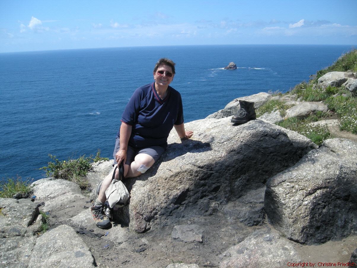 Meinen Rucksack in der richtigen Herberge ins Zimmer gestellt, zugesperrt und zum Hafen gegangen. Mir fürs Mittagessen etwas eingekauft: Obst, Brot und Wasser. Am Nachmittag bin ich zum Kap gegangen. Leider kann man nur auf der Straße gehen. Am Aussichtspunkt angekommen – tolle Aussicht! auf viel Wasser. Trotzdem eindrucksvoll ... Leuchtturm, Felsen usw. Hab ein Foto von mir am Kap. Wieder zurück ins Quartier, geduscht, Wäsche gewaschen, Knie frisch verbunden. Habe ein Cafe mit Internet gefunden, an Ingolf und Lisa e-Mail geschickt, mit Monika, Sophie und Henrik telefoniert, später noch mit Ingolf.
