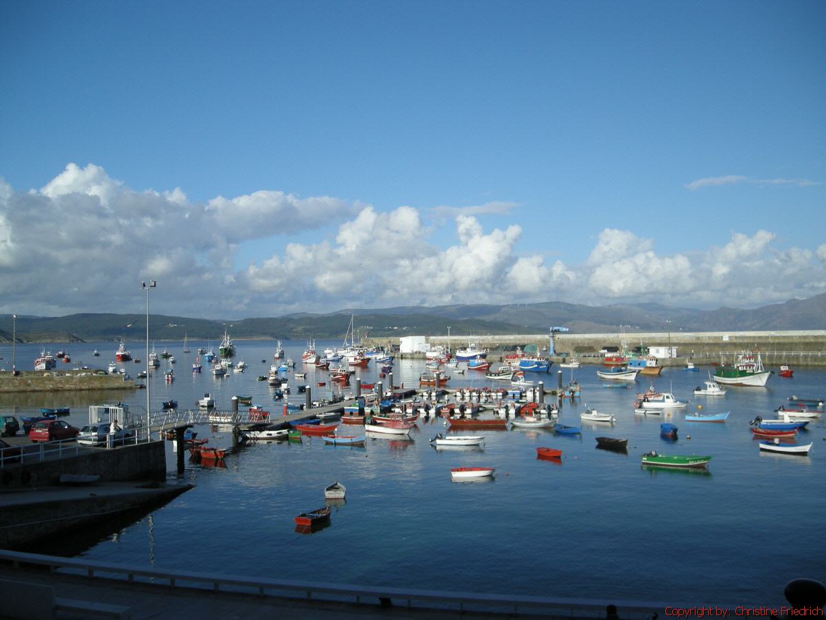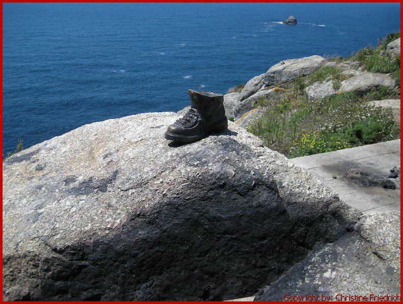 Erst nach 8 Uhr munter geworden. Bin gegen 9 Uhr hinuntergegangen und habe gefrühstückt. Heute bin ich in die andere Richtung gegangen. Etwa 3 km neben einem herrlichen Strand wollte ich auf die höchste Erhebung von Finisterre gehen. Als ich am Ende des Strandstückes war, kamen so schwarze Wolken, dass ich beschloss umzukehren. Bin jedoch zum Strand an den Wasserrand hinunter, hab meine Schuhe ausgezogen und bin die 3 km barfuss im Wasser zurückgegangen. Es war traumhaft. Habe schöne Muscheln gefunden und viele Fotos gemacht. Für Mittag im Supermarkt etwas eingekauft. Am Nachmittag Stadt und Hafen. Früh, wenig gegessen. Mit Ingolf telefoniert. Rucksack gepackt und früh schlafen gegangen.