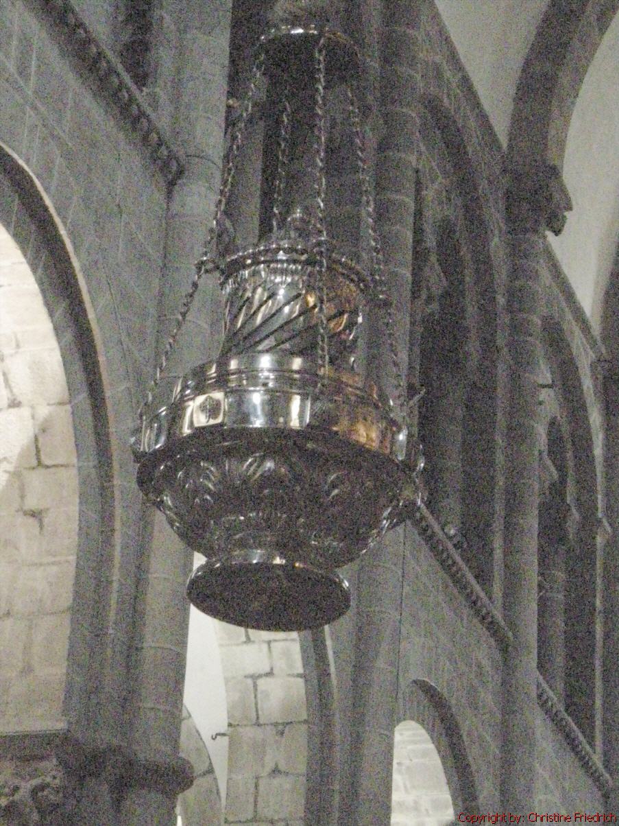 Das Kirchenschiff ist ziemlich lange und der Eingang ist am hinteren Ende der Kirche. Dort sitzen die Familien mit den Kindern auf schmalen Bänken. Sie können sich gut bewegen und stören die anderen Kirchenbesucher nicht. Nachdem der Gottesdienst aus ist, werfen die Nonnen für die Kinder Süßigkeiten von der Empore (Klausur).