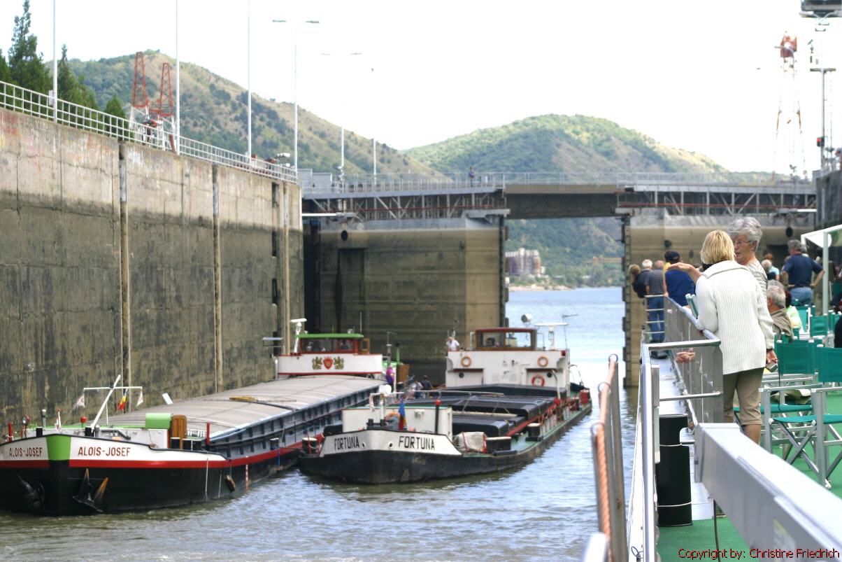 Unterwegs fuhren wir durch verschiedene Schleusen, sahen auch die Trajanstafel, welche heute 34m höher gesetzt ist und daran erinnert, dass Trajan dort (zu Kriegszwecken) eine Strasse bauen ließ.